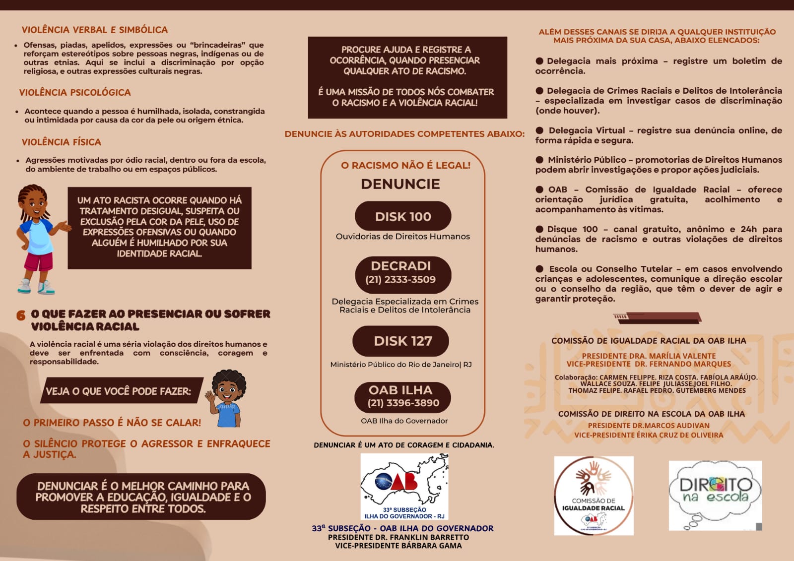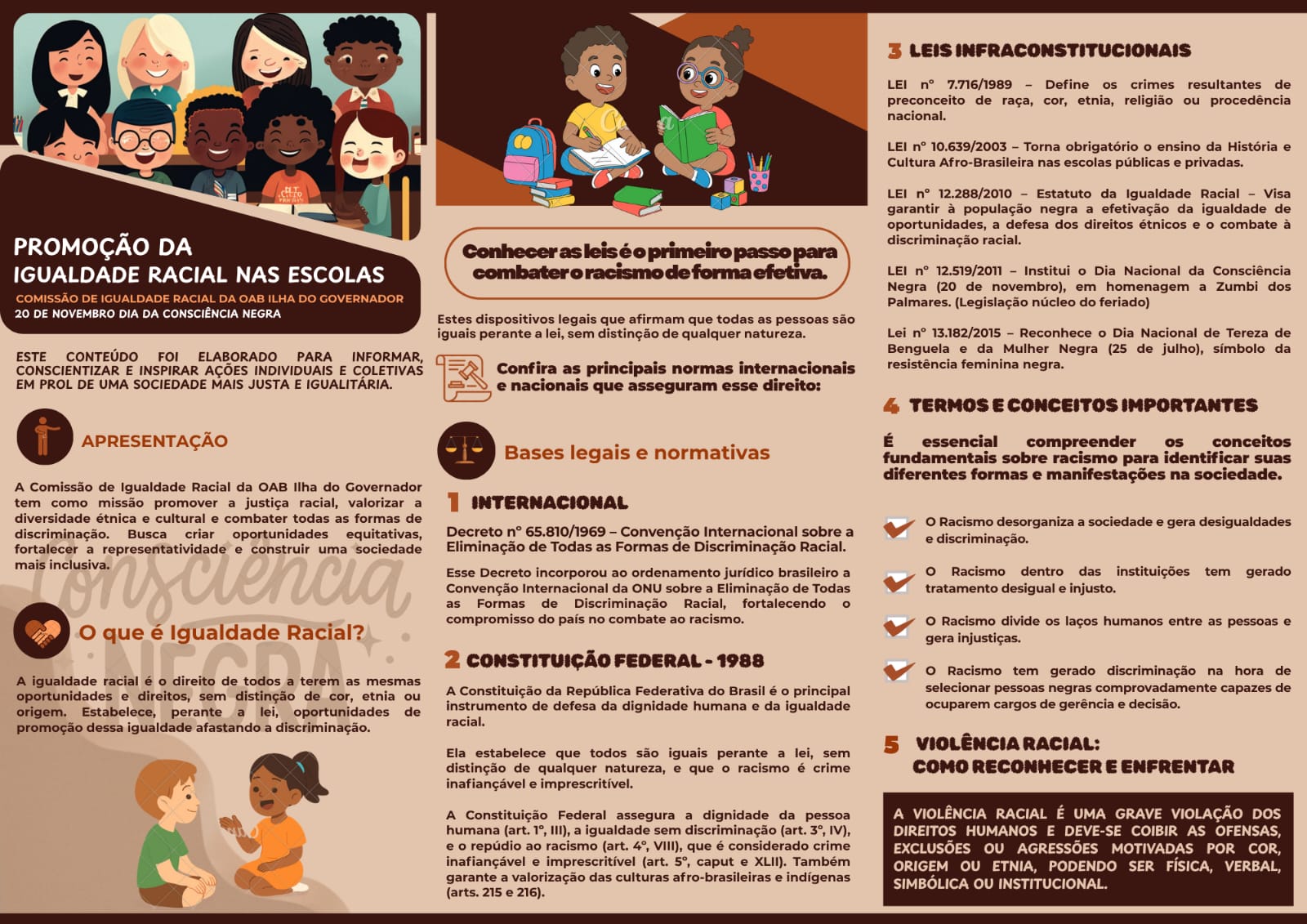 A OAB Ilha do Governador lança a Cartilha de Promoção à Igualdade Racial nas Escolas, um material especialmente desenvolvido para crianças e adolescentes do 5º ao 9º ano.
